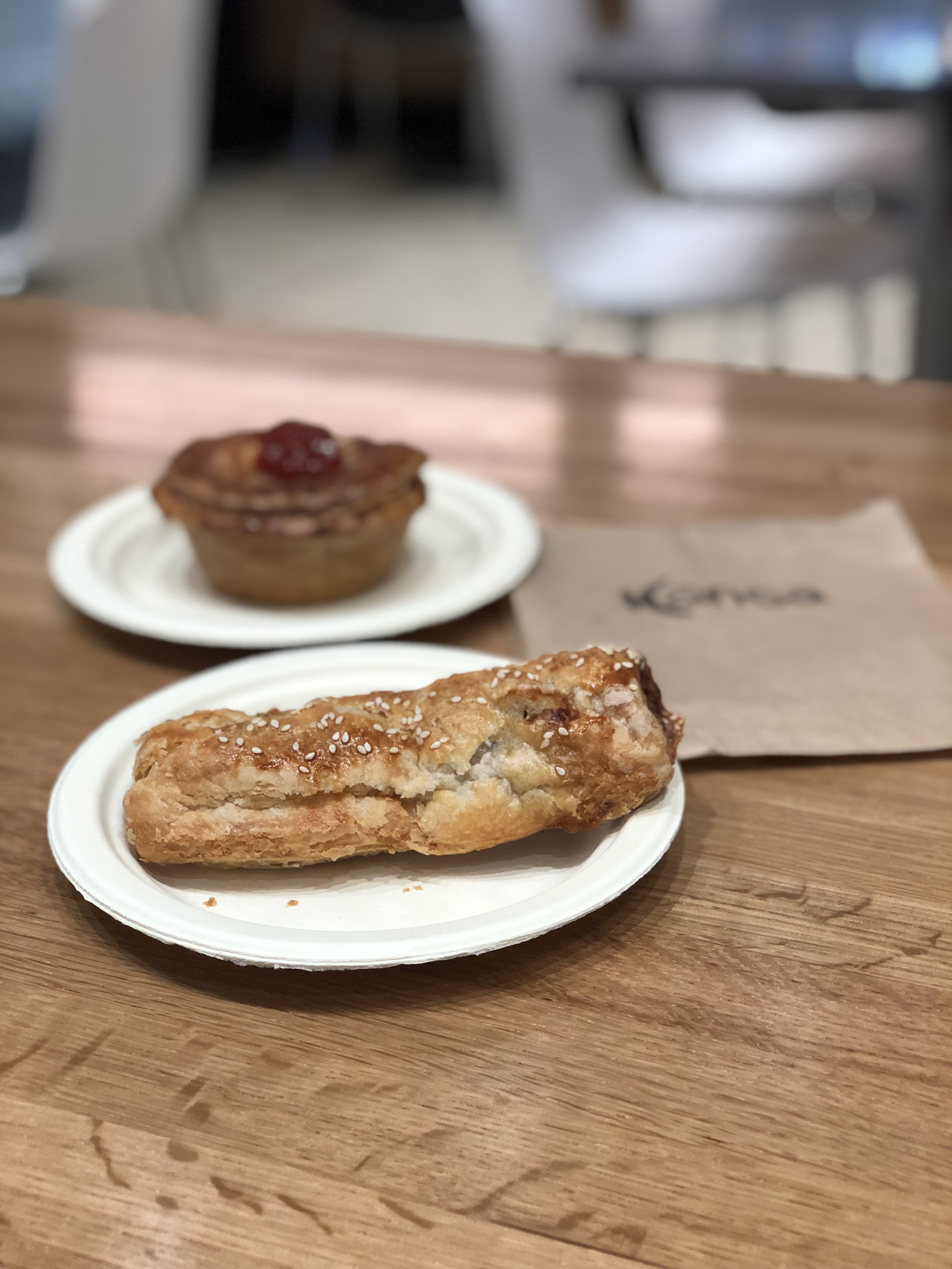 After some coffee, I also had the chance to try meat pie and sausage roll. It is considered snacks in Sydney where they can buy it from supermarkets or from pastry shops. The stuffing of meat pie usually includes steak/beef and mushroom/ beef, chicken cream carrots and peas. Both meat pie and sausage roll, you should dip with ketchup and eat it. There are also 2 ways to eat meat pie. The first one is to cut the top and scoop out the meat to eat and the second way is to bite it from the side. Compare to the one in Sydney, the pastry is pretty good however the size was smaller and it was not as filling. steak beef, mushroom and beef, chicken cream carrots and peas After some coffee, I also had the chance to try meat pie and sausage roll. It is considered snacks in Sydney where they can buy it from supermarkets or from pastry shops. The stuffing of meat pie usually includes steak/ Both meat pie and sausage roll, you should dip with ketchup and eat it. There are also 2 ways to eat meat pie. The first one is to cut the top and scoop out the meat to eat and the second way is to bite it from the side. Compare to the one in Sydney, the pastry is pretty good however the size was smaller and it was not as filling. Yet, the taste of the meat pie and sausage roll is flavourful and I like it.